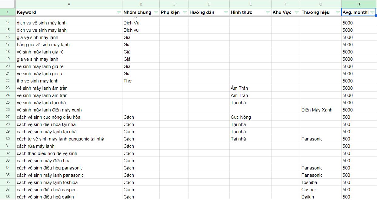 File dữ liệu từ khóa Google về dịch vụ vệ sinh máy lạnh, được thu thập – phân tích – phân nhóm bài bản, giúp bạn tiết kiệm thời gian và tối ưu hiệu quả nội dung hoặc quảng cáo.